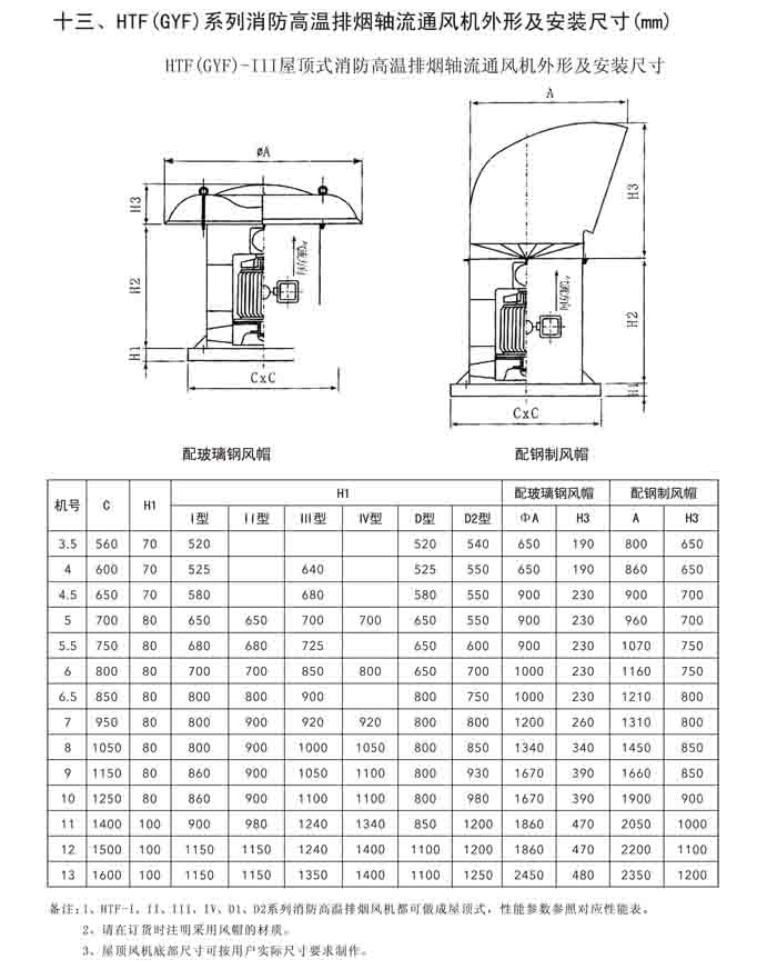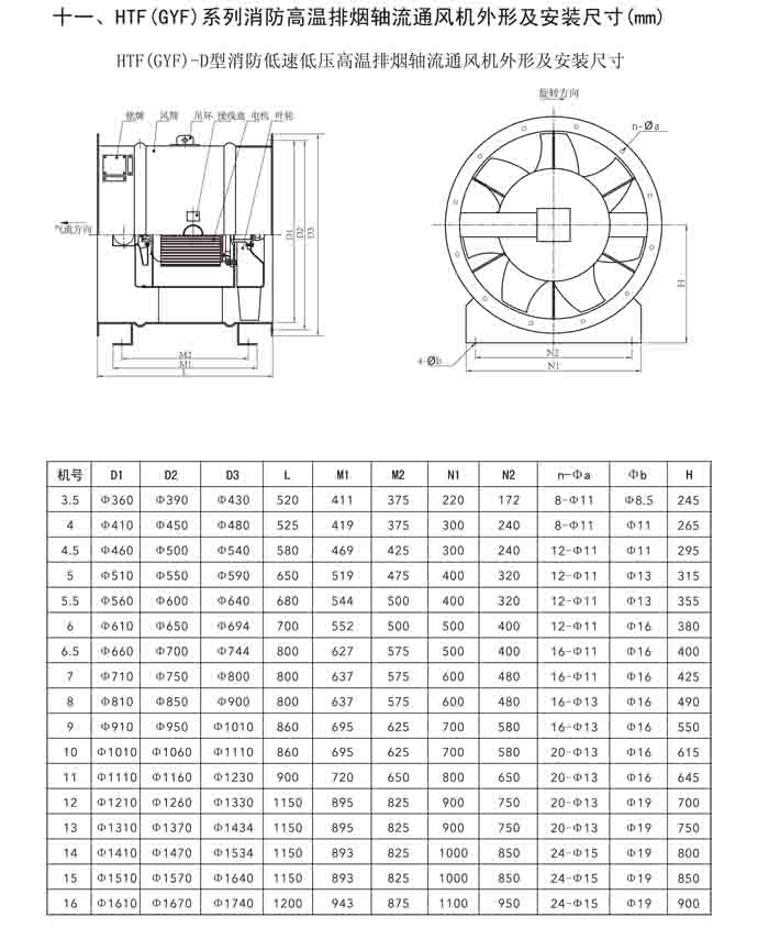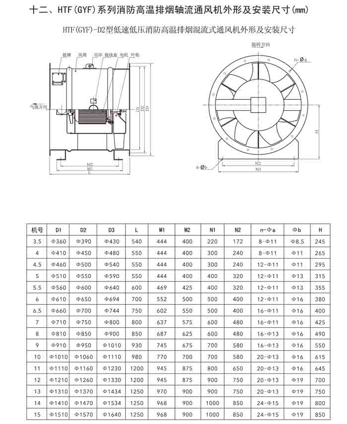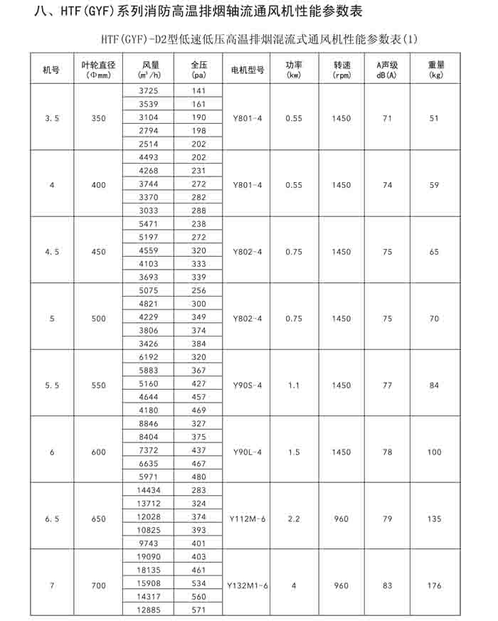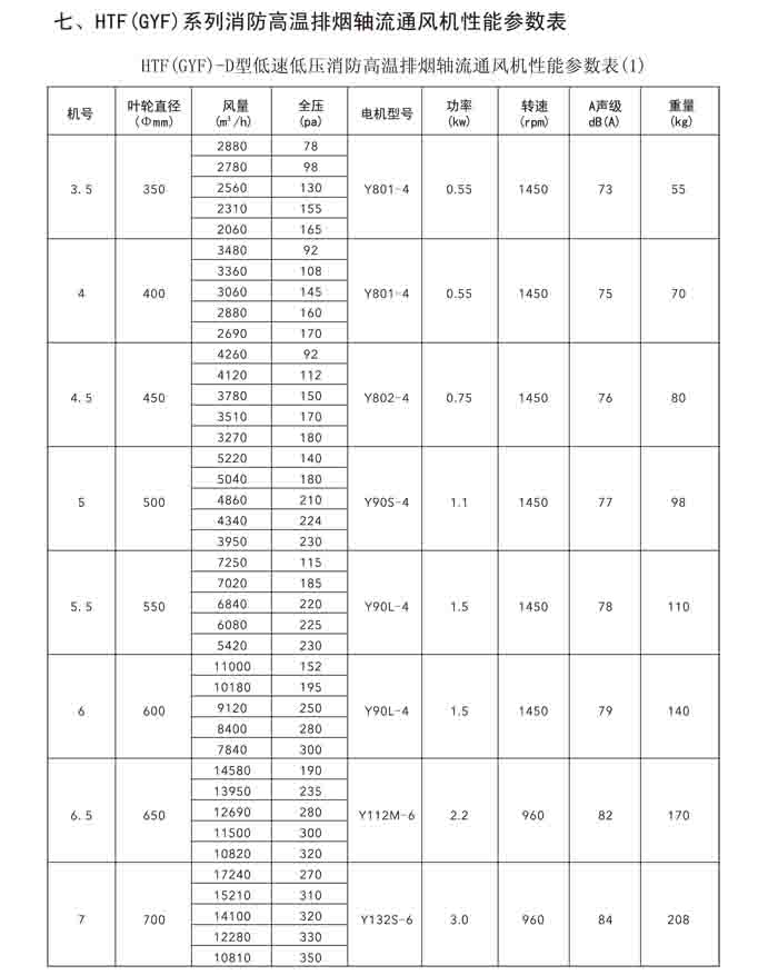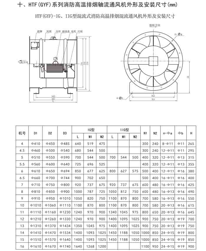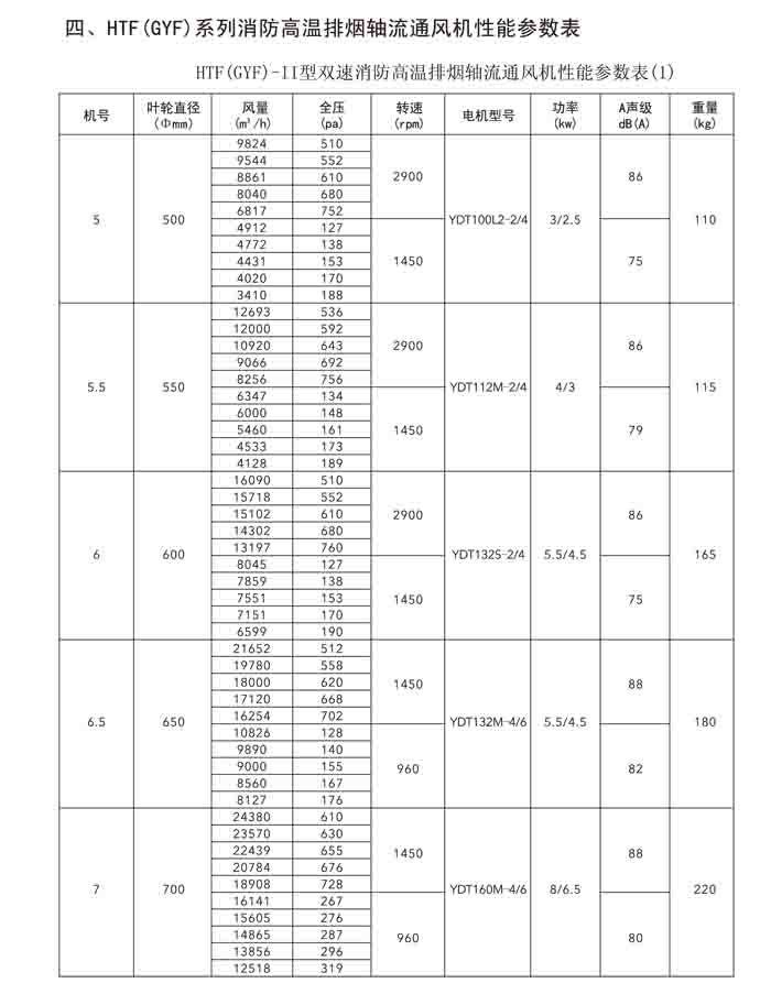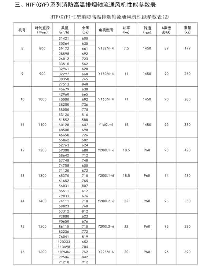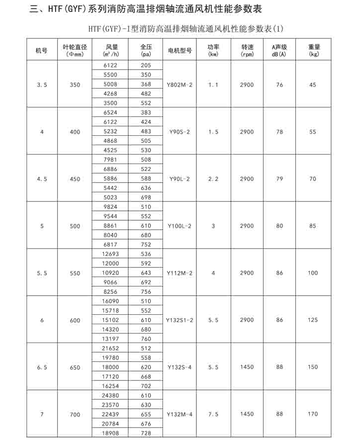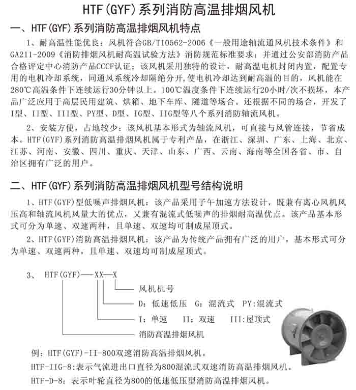 一、HTF(GYF)-I、II、III、D、G、IIG 系列消防排煙軸流風(fēng)機