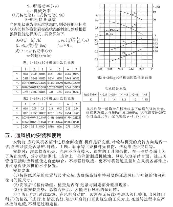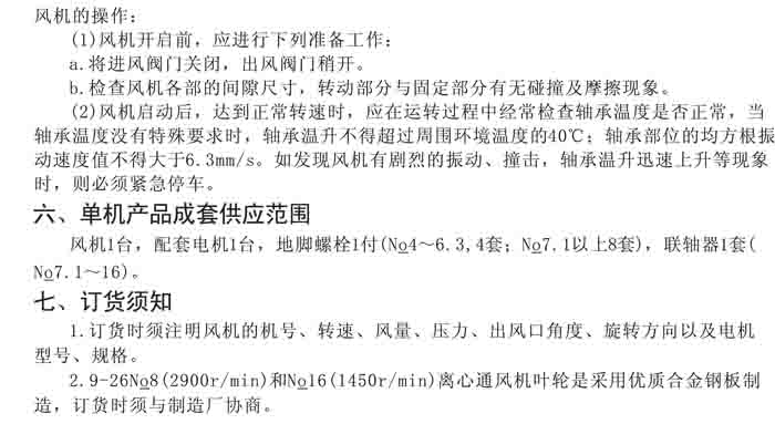 一、風(fēng)機(jī)選用參考、安裝維護(hù)使用說明、常見故障分析、訂貨注意事項