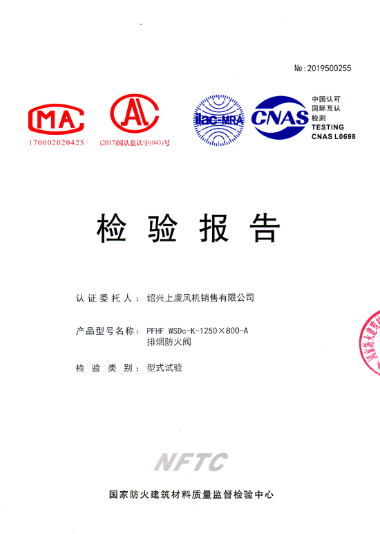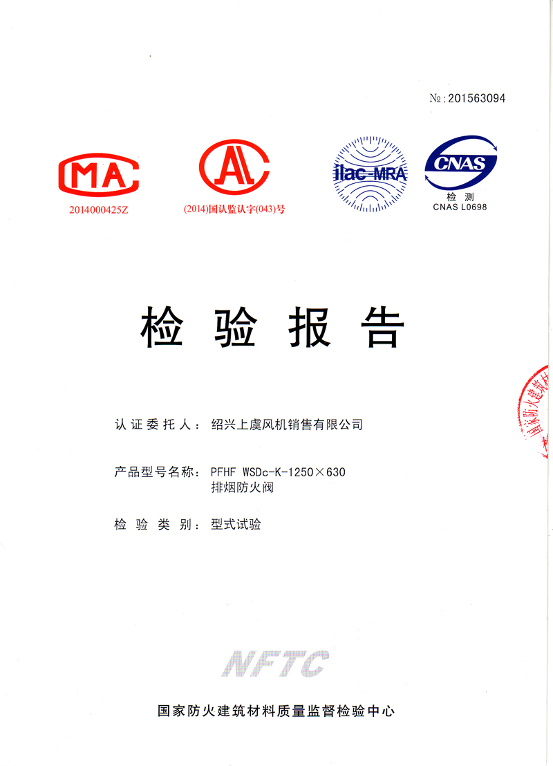 排煙防火閥 PFHF WSDc-K-1250*630 |
